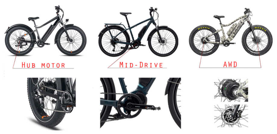 Two main types of e-bikes come with either an e bike motor placed in the bottom bracket (mid-drive) or in the rear wheel hub (hub motor).